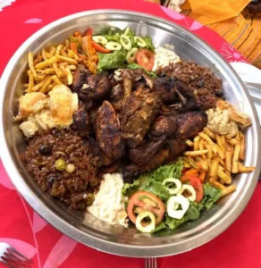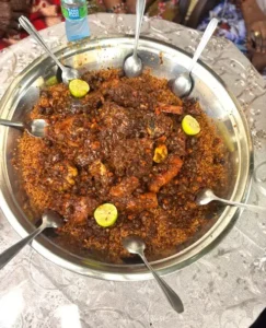 Dรจs que le repas est prรชt, on prรฉpare de grands plats soigneusement garnis : ici du thiรฉboudienne au poisson, lร du yassa poulet, ailleurs encore du maffรฉ onctueux. Les enfants, tout fiers, sont souvent chargรฉs de porter ces plats chez les voisins ou chez des amis proches. Ils sont heureux dโapporter un peu de fรชte ร la porte dโร cรดtรฉ.